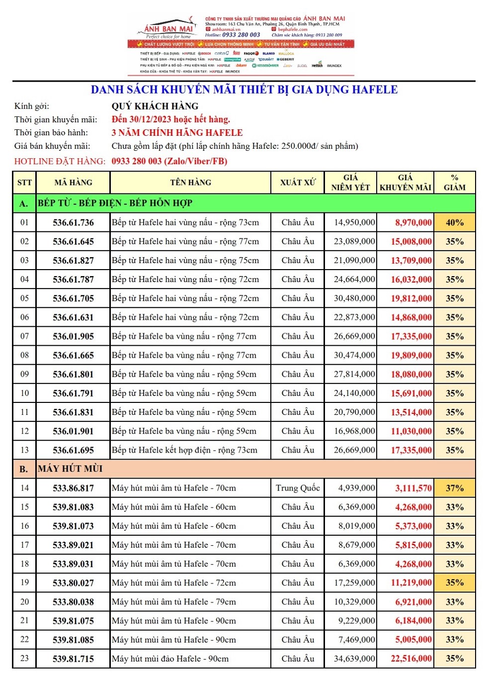- Thiết bị bếp, chậu vòi, tủ lạnh GIẢM TỪ 35-45%.