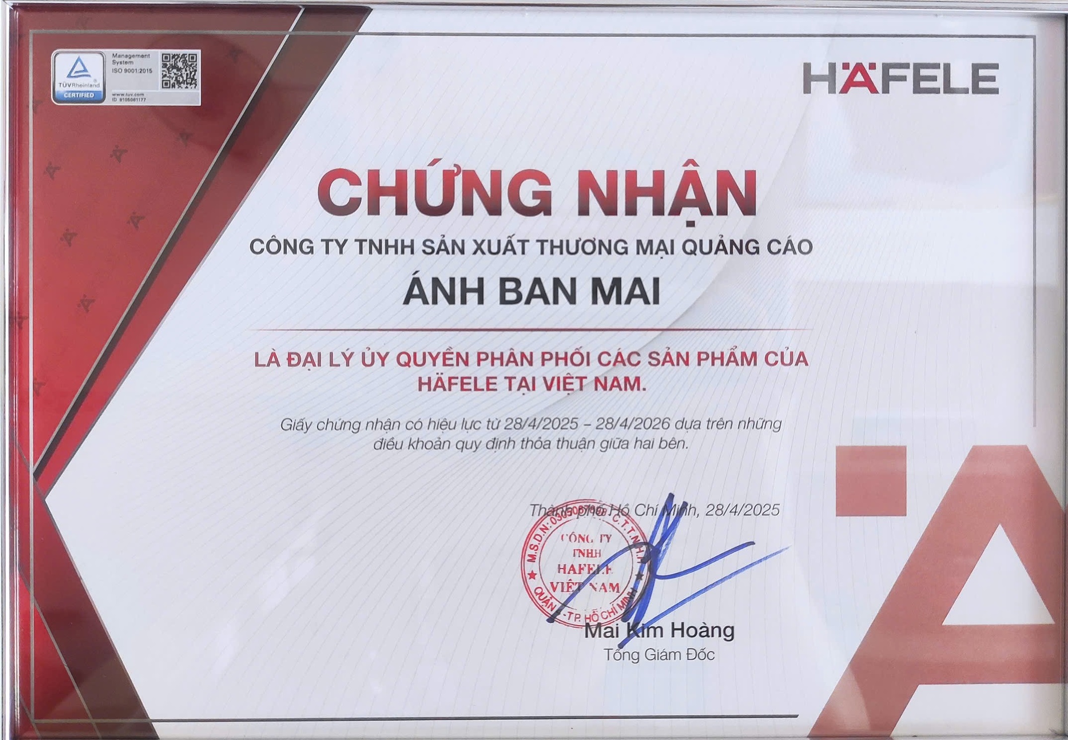 Công ty Ánh Ban Mai là đại lý phân phối chính hãng các thương hiệu Châu Âu như Hafele, Bosch, Smeg, Fagor, Teka, Cata, Duravit, Hansgrohe, Axor, Carysil, Hettich, Imundex, Cucina … Sản xuất các sản phẩm gia dụng, thiết bị bếp, phụ kiện cửa đi, phụ kiện kính, phụ kiện tủ bếp, thiết bị vệ sinh.