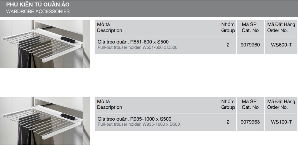Tên sản phẩm: Giá treo quần WS600-T Hettich