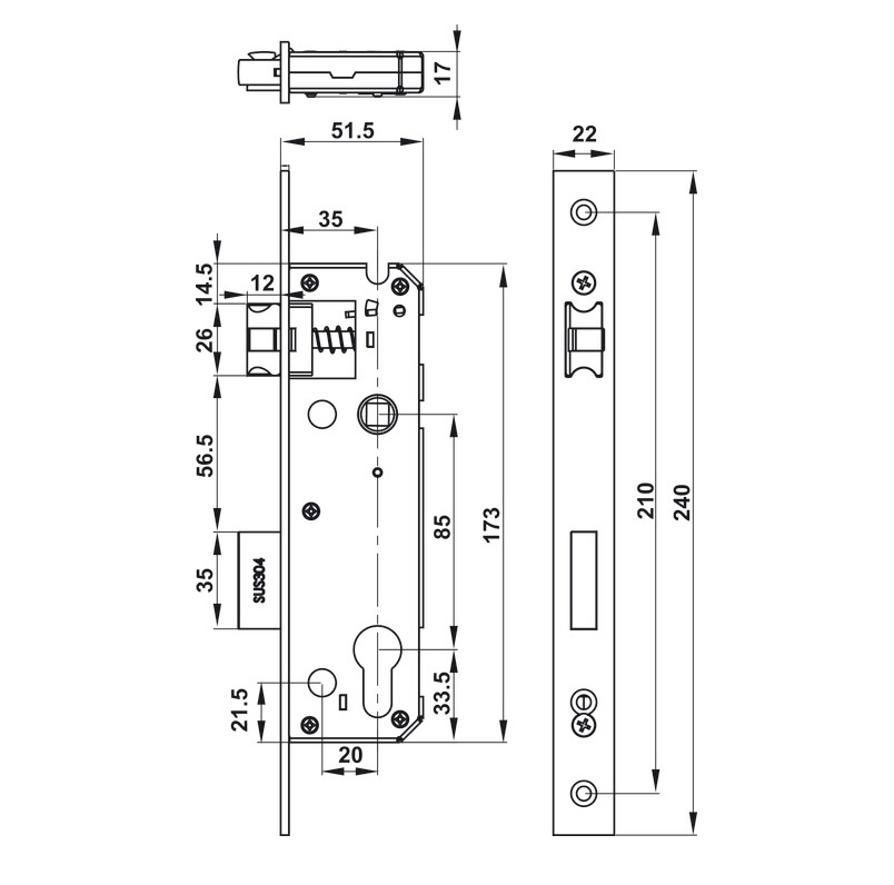 Kích thước thân khóa của khóa Hafele 912.20.145 DL6600-TCS: