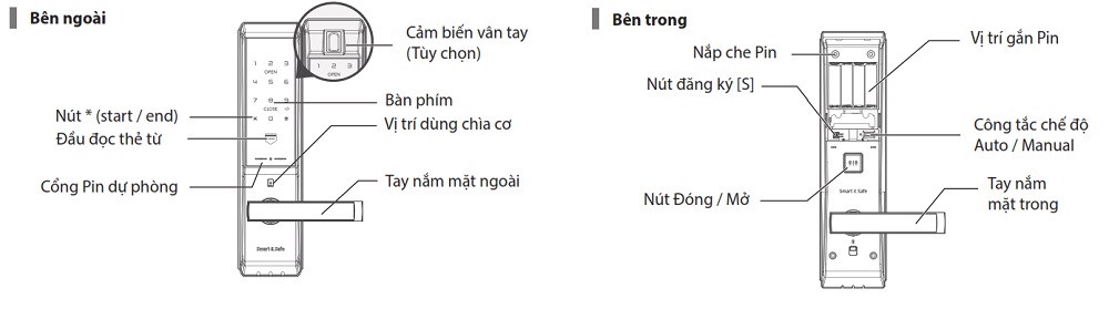 - Mở khóa : Mật mã, thẻ từ và 2 chìa cơ