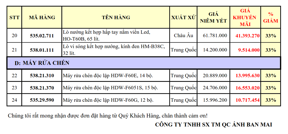 1. THIẾT BỊ GIA DỤNG: GIẢM TỪ 33 - 60%: