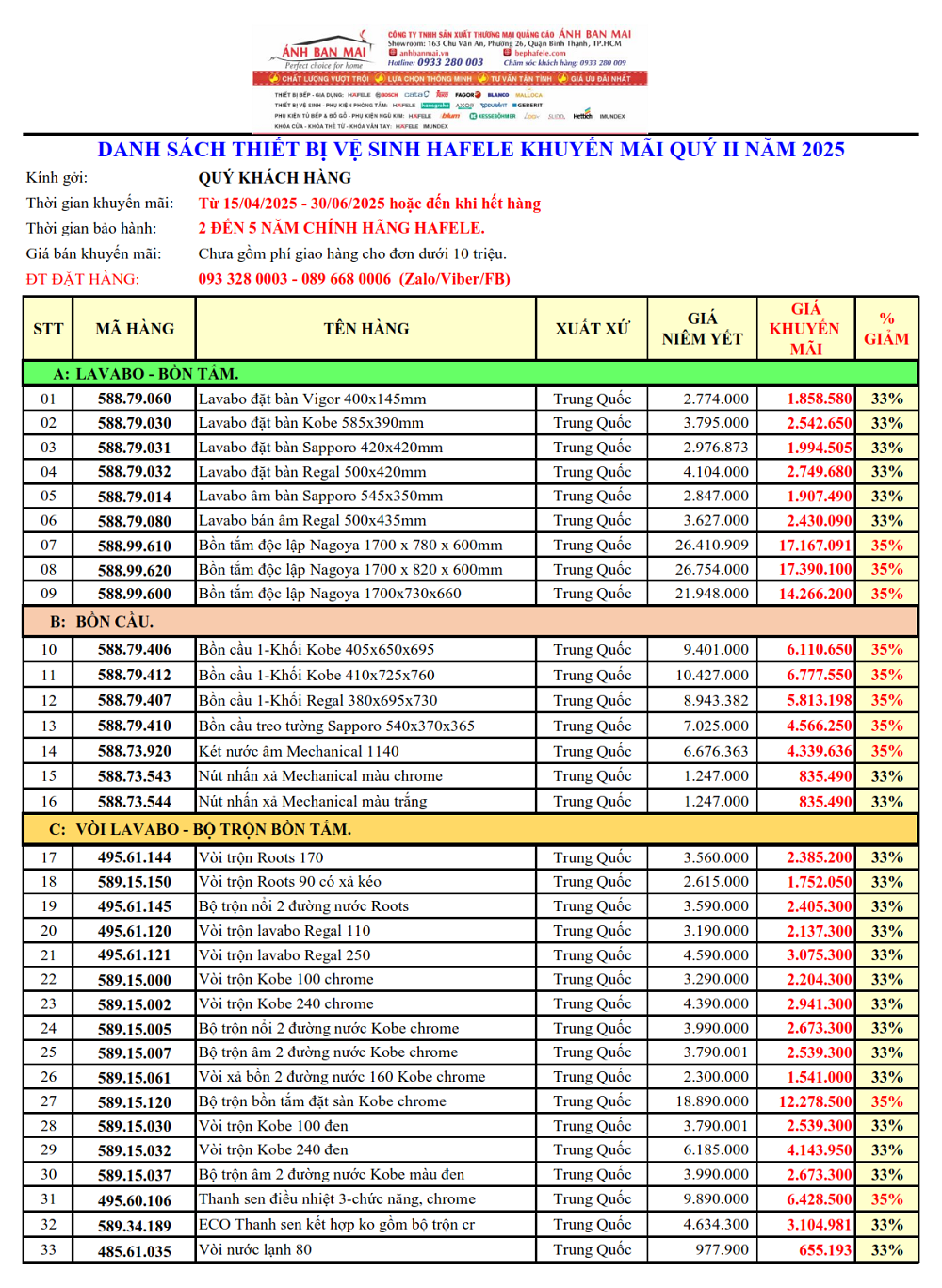 3. THIẾT BỊ VỆ SINH GIẢM TỪ 33 - 35%: