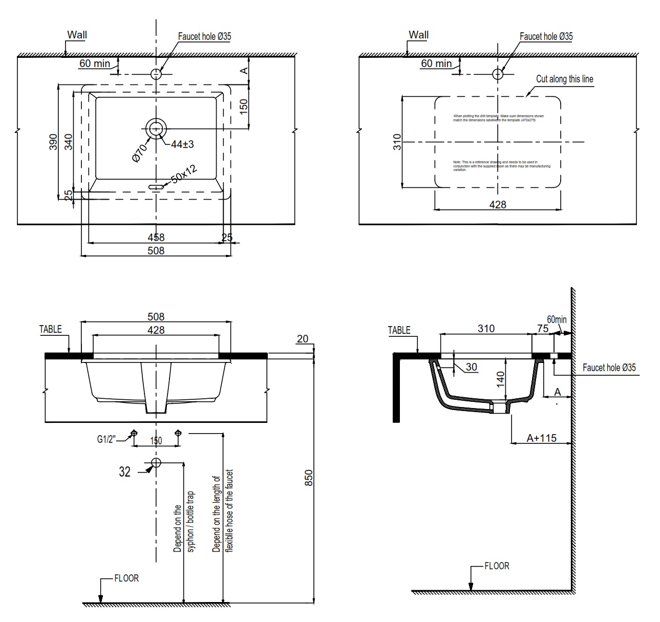 - Sản phẩm không bao gồm siphon và bộ xả (Đặt hàng riêng)