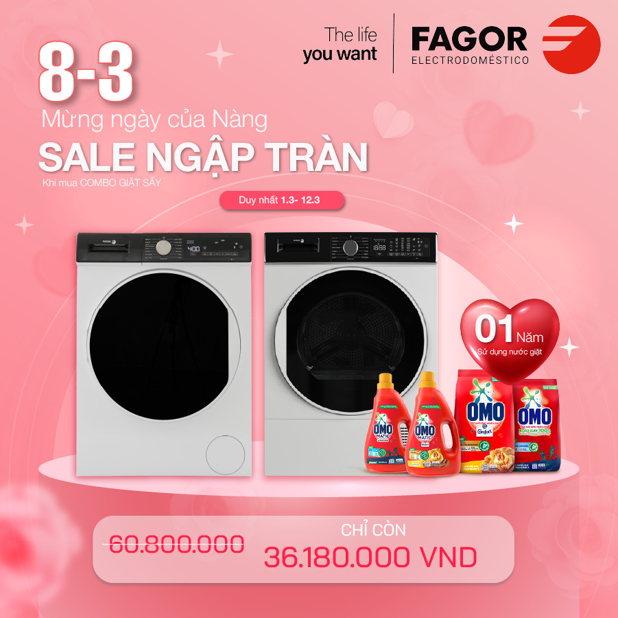 Mừng ngày của nàng, FAGOR giảm ngập tràn.