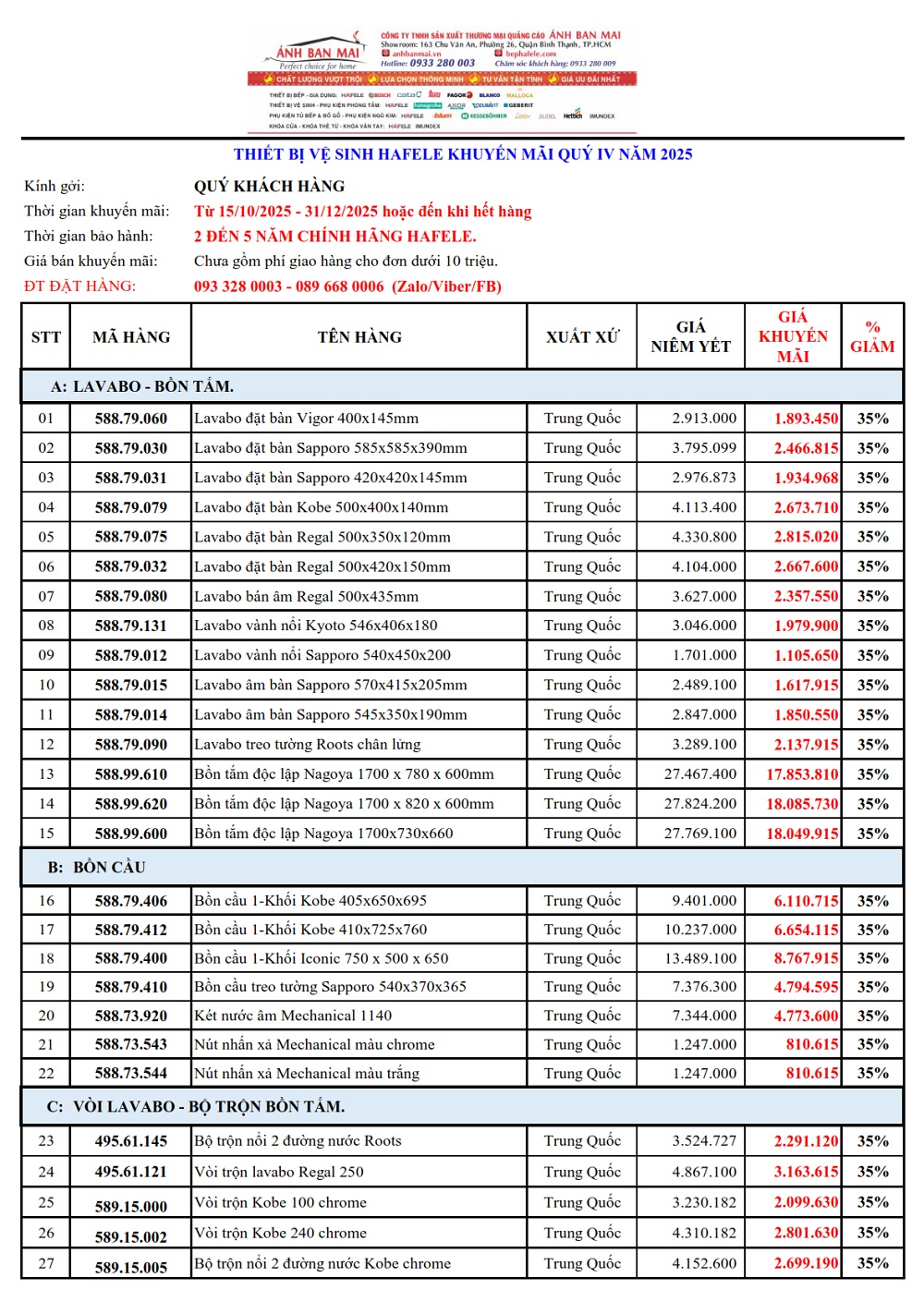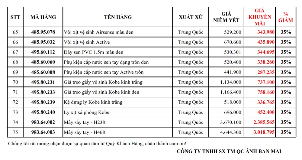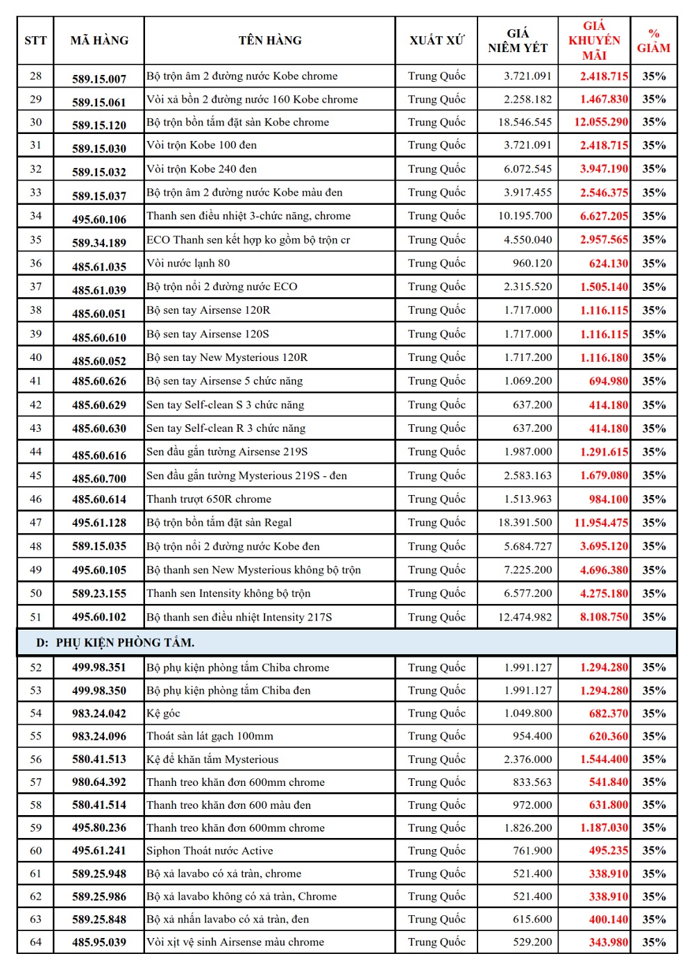 THIẾT BỊ VỆ SINH: GIẢM ĐẾN 35%: