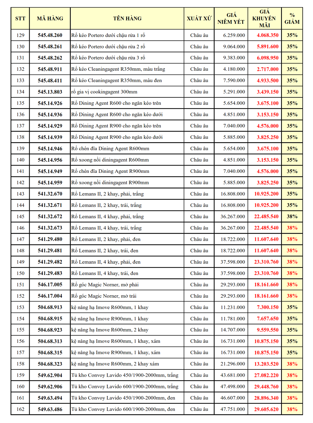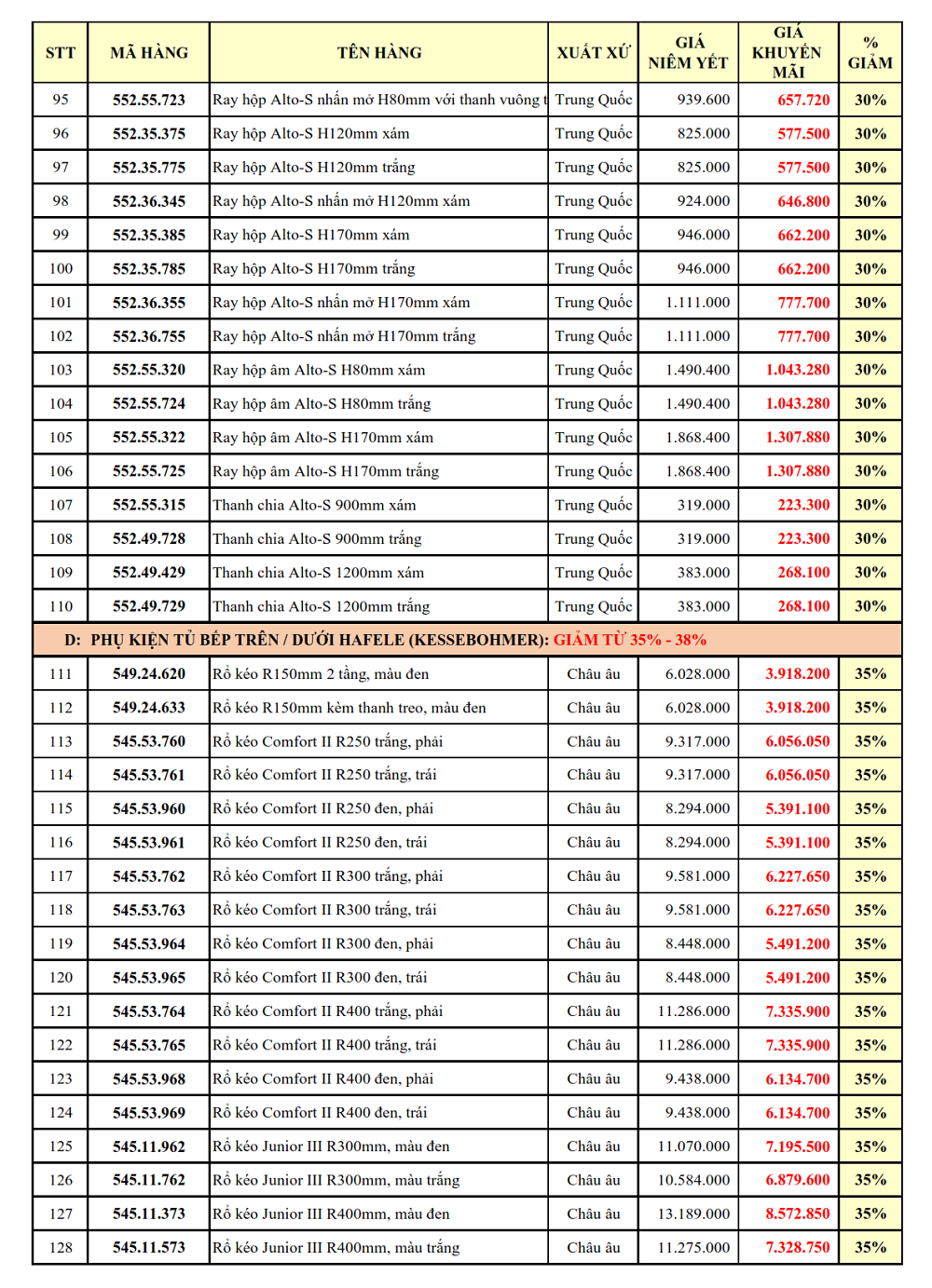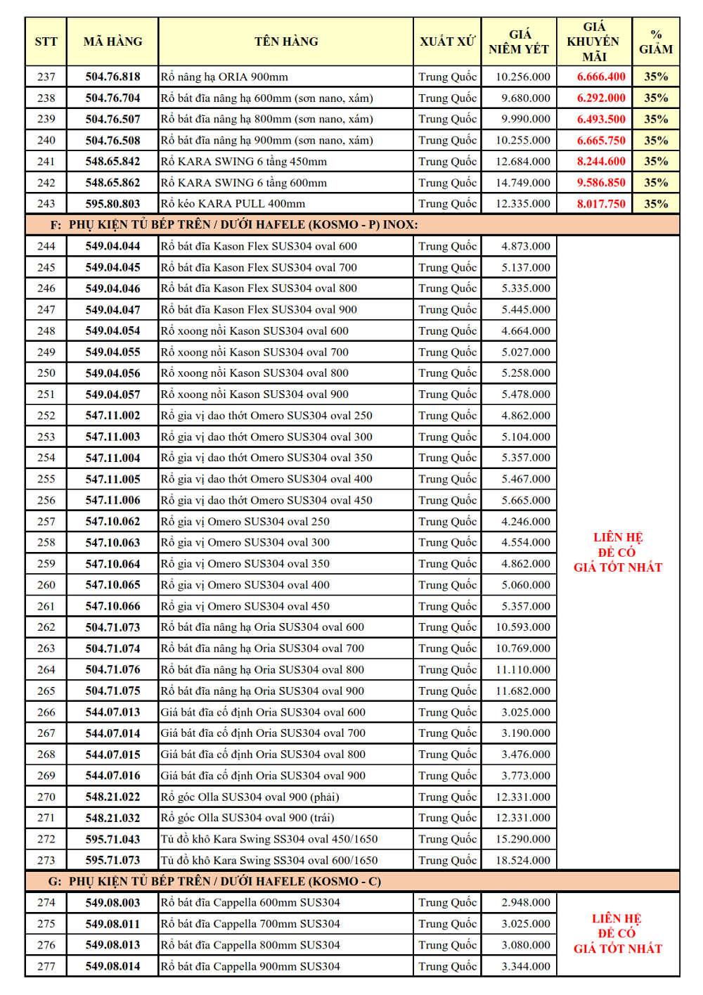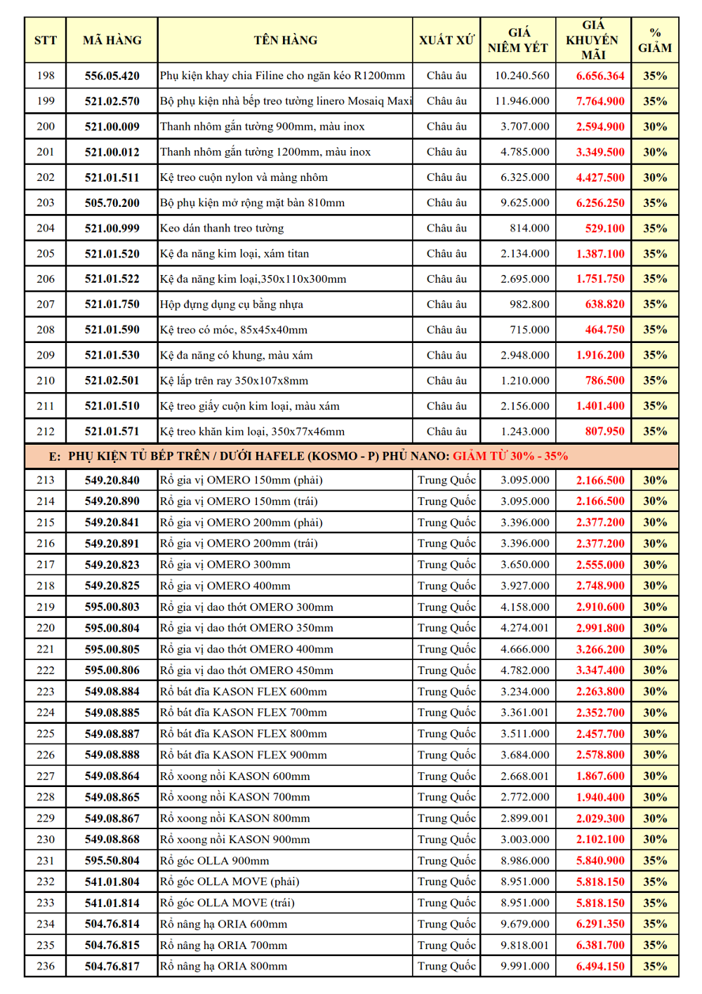 1. PHỤ KIỆN TỦ BẾP: GIẢM TỪ 30 - 38%: