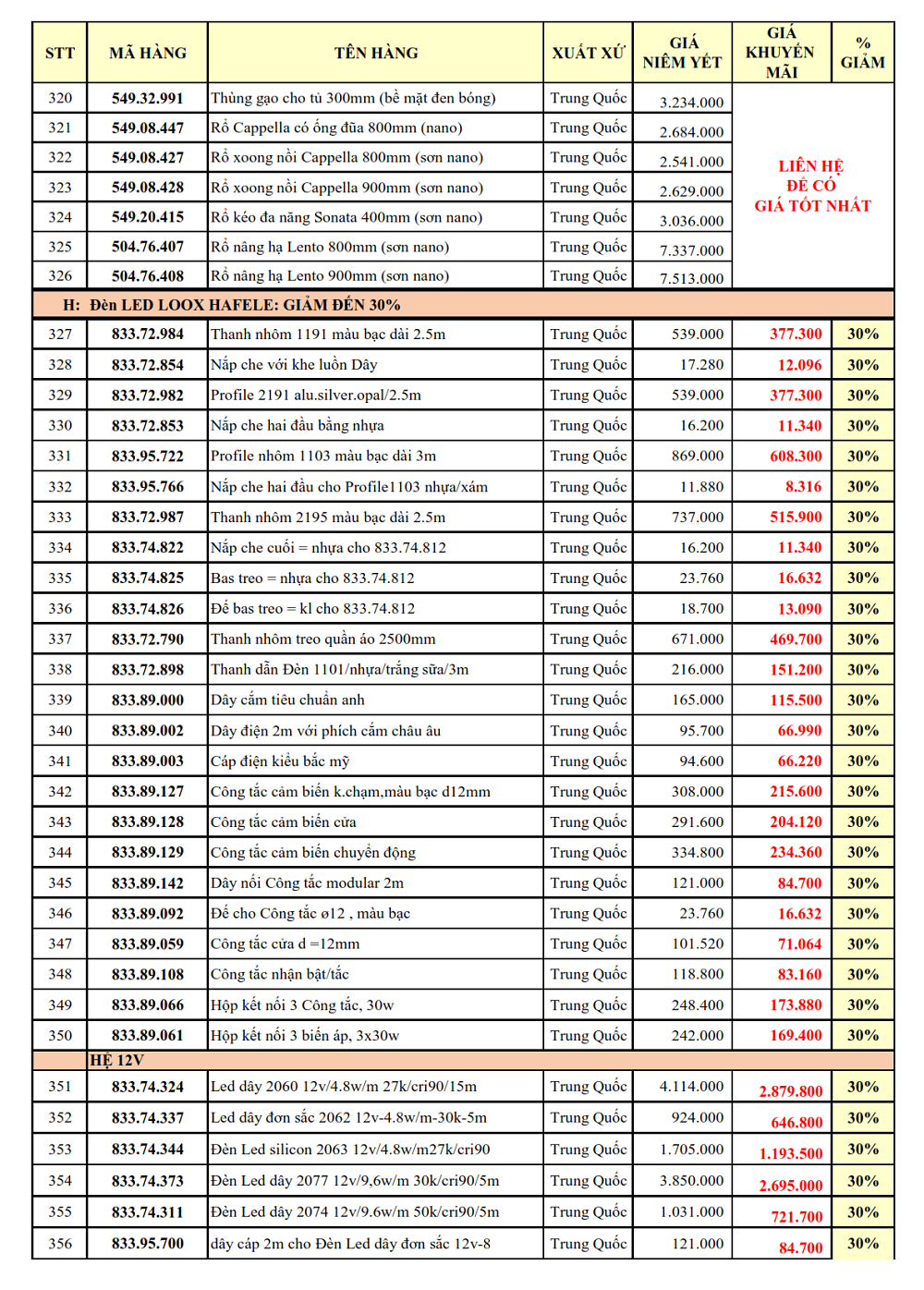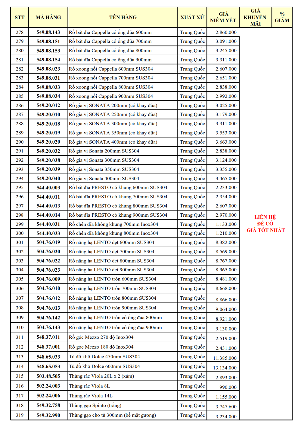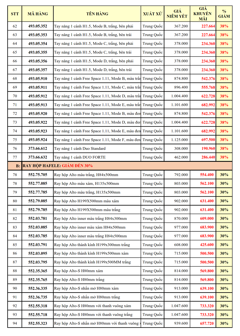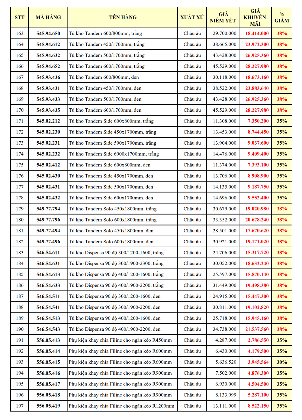 1. PHỤ KIỆN TỦ BẾP: GIẢM TỪ 30 - 38%: