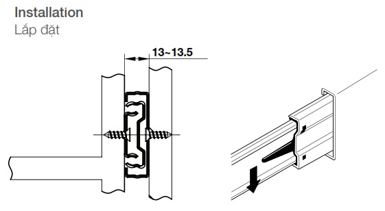- Lắp đặt vào ray hộp: Bắt vít, lắp đặt ở mặt bên