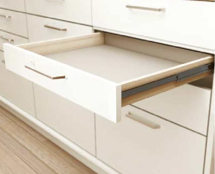 Ray bi được sử dụng trong hệ thống ngăn kéo tủ trong các nhà bếp hiện đại, mang lại những tiện ích tối ưu cho người dùng.