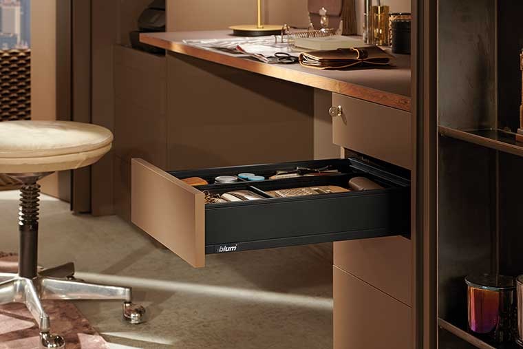 Ray hộp Blum gồm cặp ray trượt và 2 thành ngăn kéo mang đến vô số khả năng thiết kế khác nhau. Có 2 dòng để lựa chọn là LEGRABOX & MERIVOBOX. Từ ứng dụng tiêu chuẩn đến đặc biệt, cả 2 dòng đều thoả đáp tiêu chí trượt êm mượt, dễ sử dụng, chất lượng bền bỉ và có thiết kế đẹp mắt.