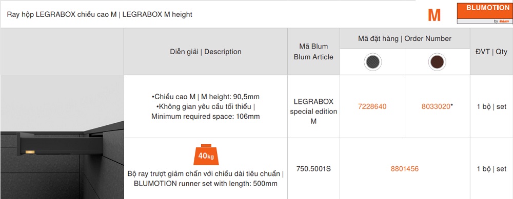Tên sản phẩm: Ray hộp blum Legrabox-special-M