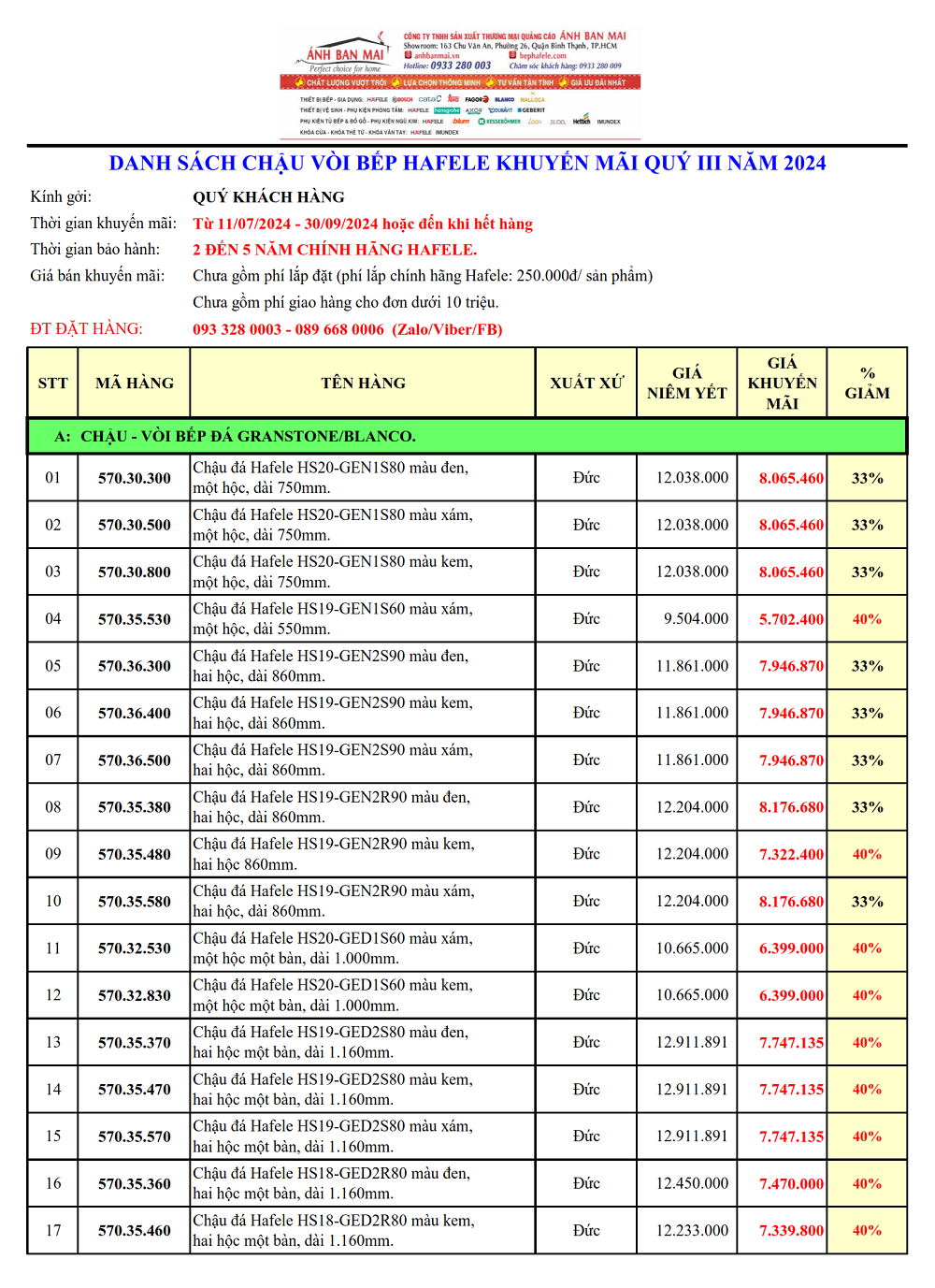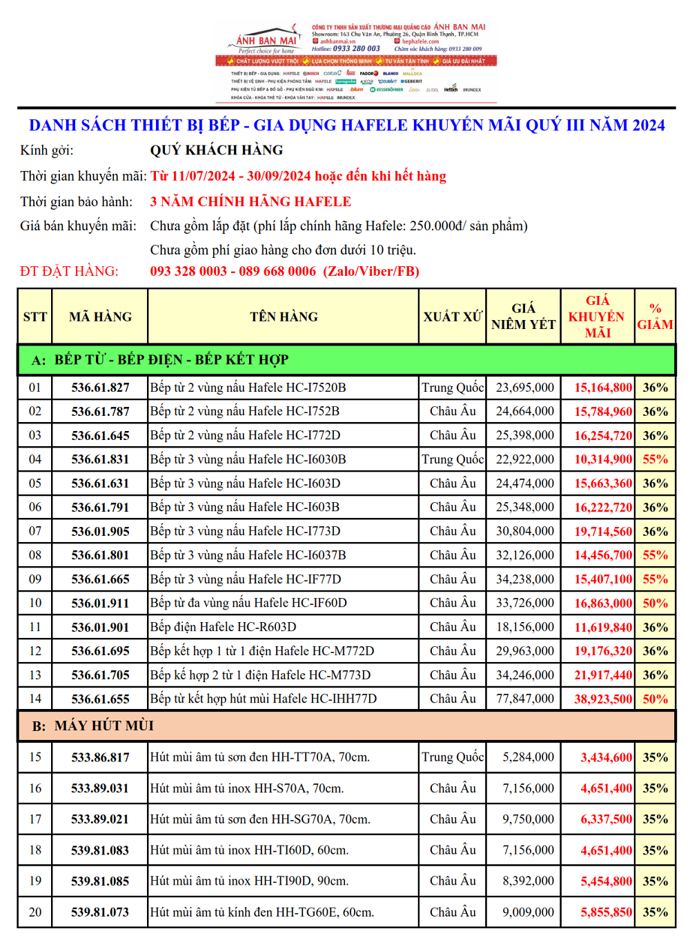 SIÊU SALE ĐỔ BỘ, ƯU ĐÃI MÙA HÈ TỪ HAFELE, GIẢM ĐẾN 55%.