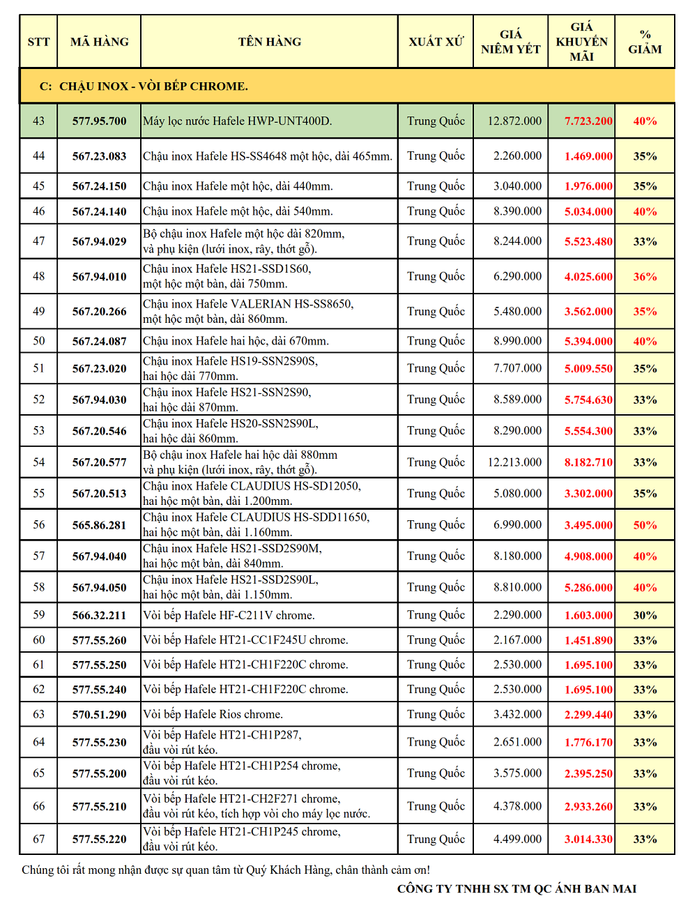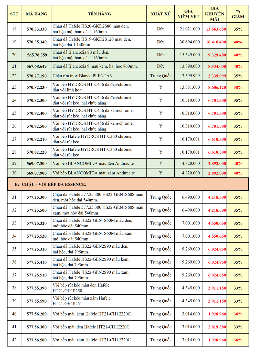 2. CHẬU VÒI BẾP GIẢM TỪ 33 - 50%: