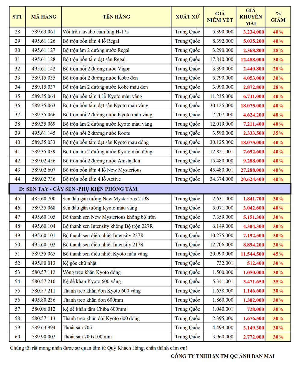 3. THIẾT BỊ VỆ SINH GIẢM TỪ 28 - 40%: