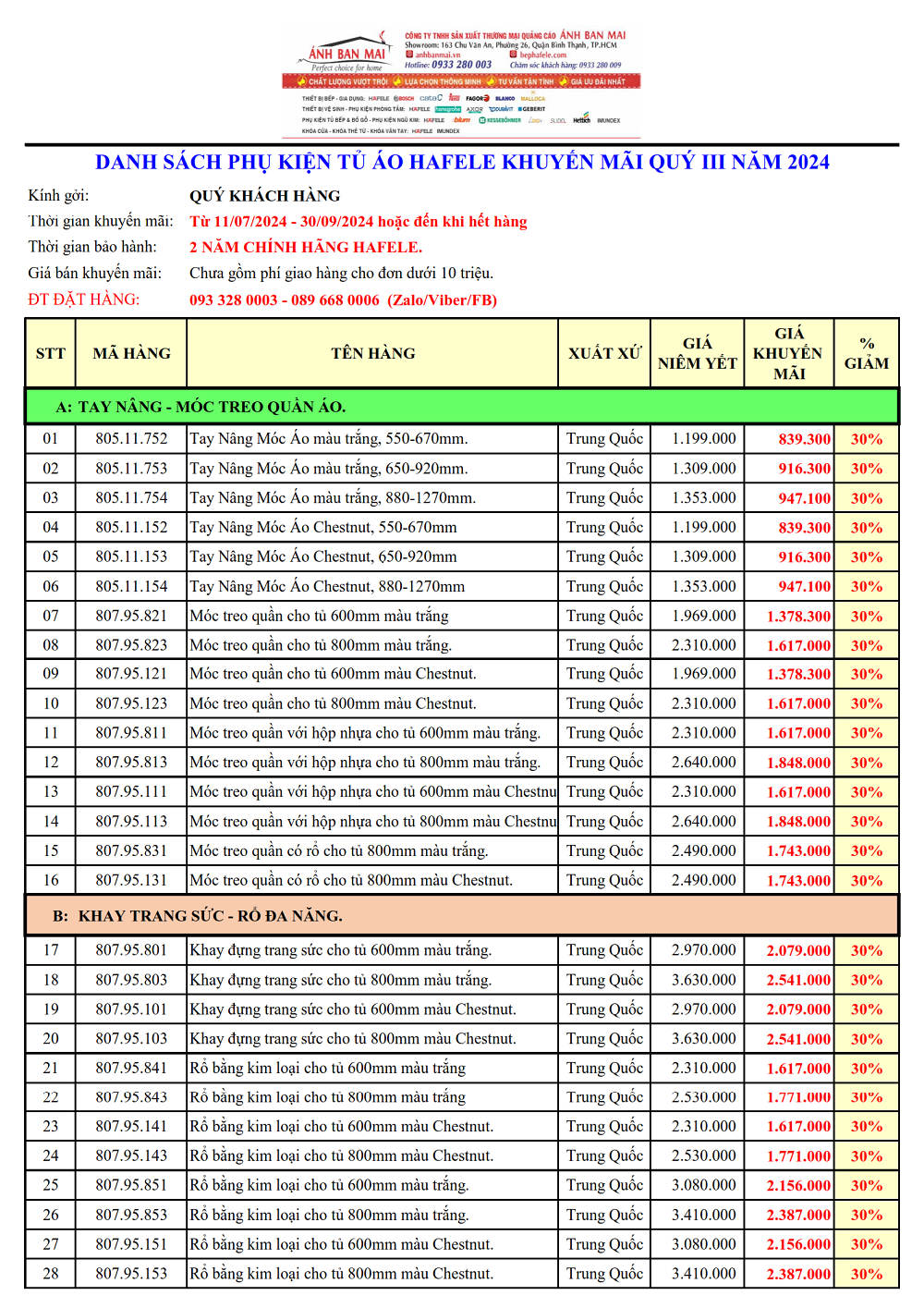 4. PHỤ KIỆN TỦ ÁO GIẢM 30 - 35%: