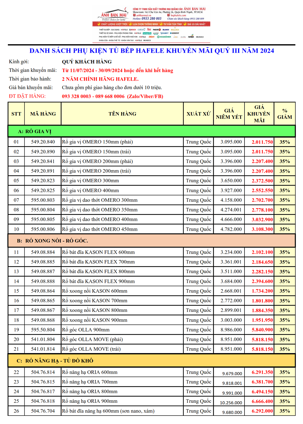 4. PHỤ KIỆN TỦ BẾP GIẢM 35 - 38%: