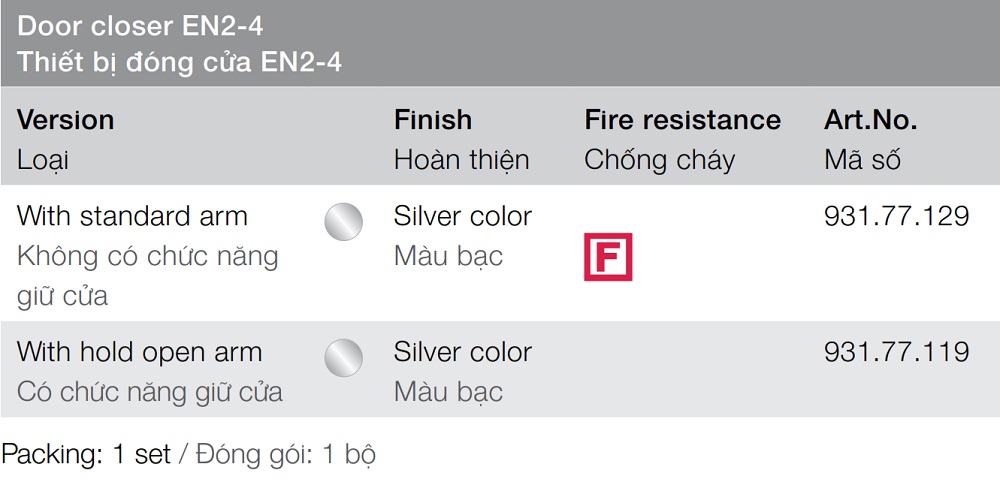 Qúy khách tham khảo thêm tùy chọn chức năng của thiết bị đóng cửa EN2-4 cho cửa 80kg theo bảng mã bên dưới: