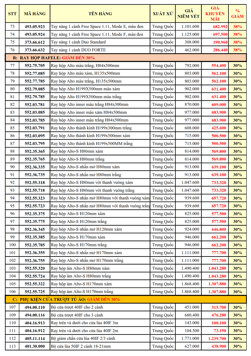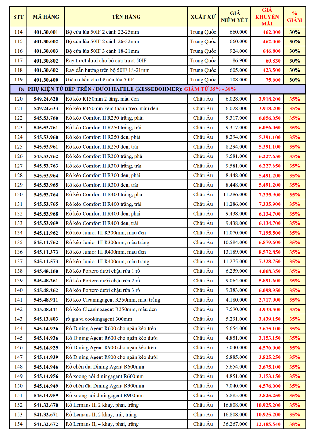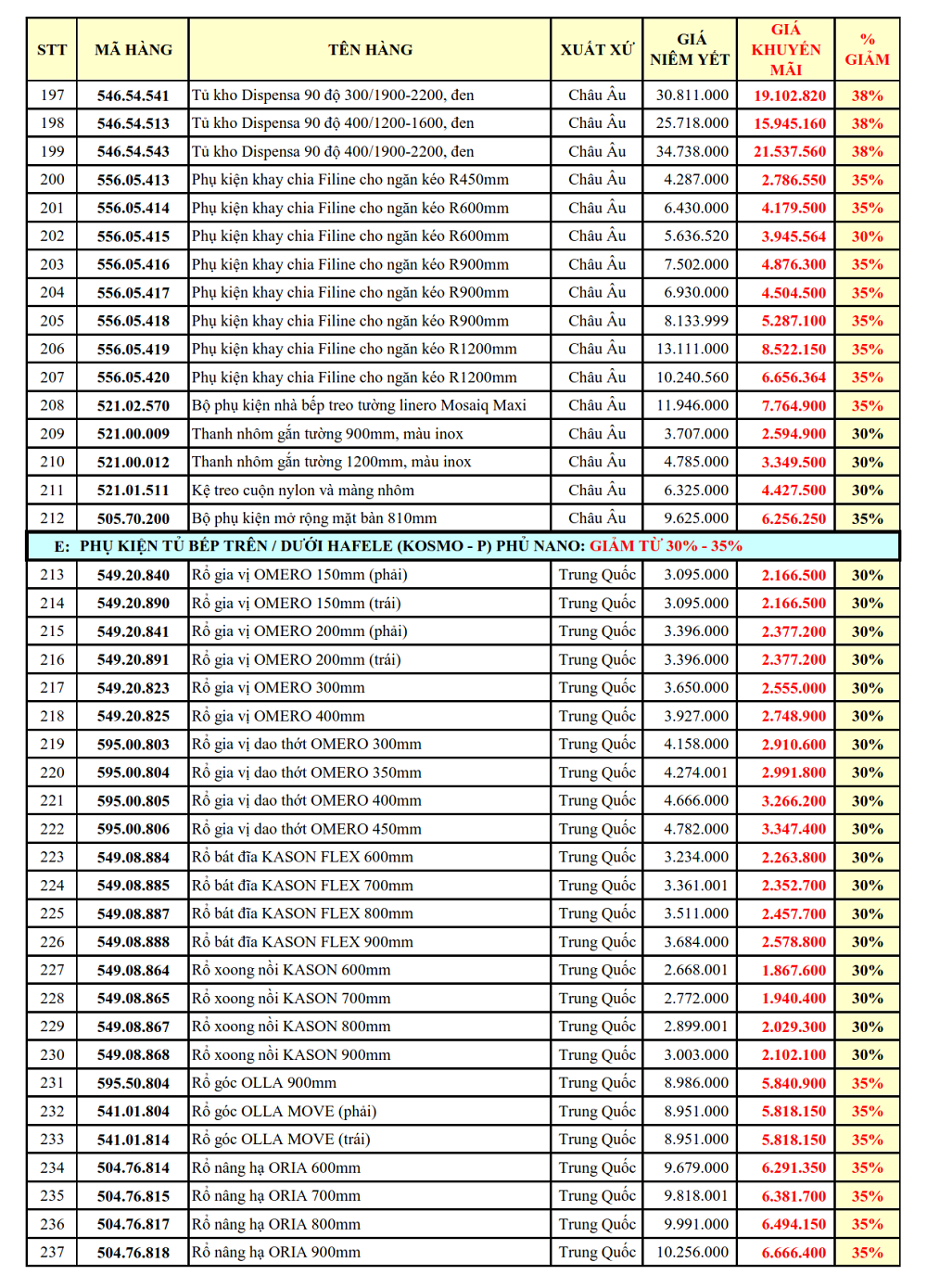 1. PHỤ KIỆN TỦ ÁO - TỦ BẾP: GIẢM TỪ 25 - 40%: