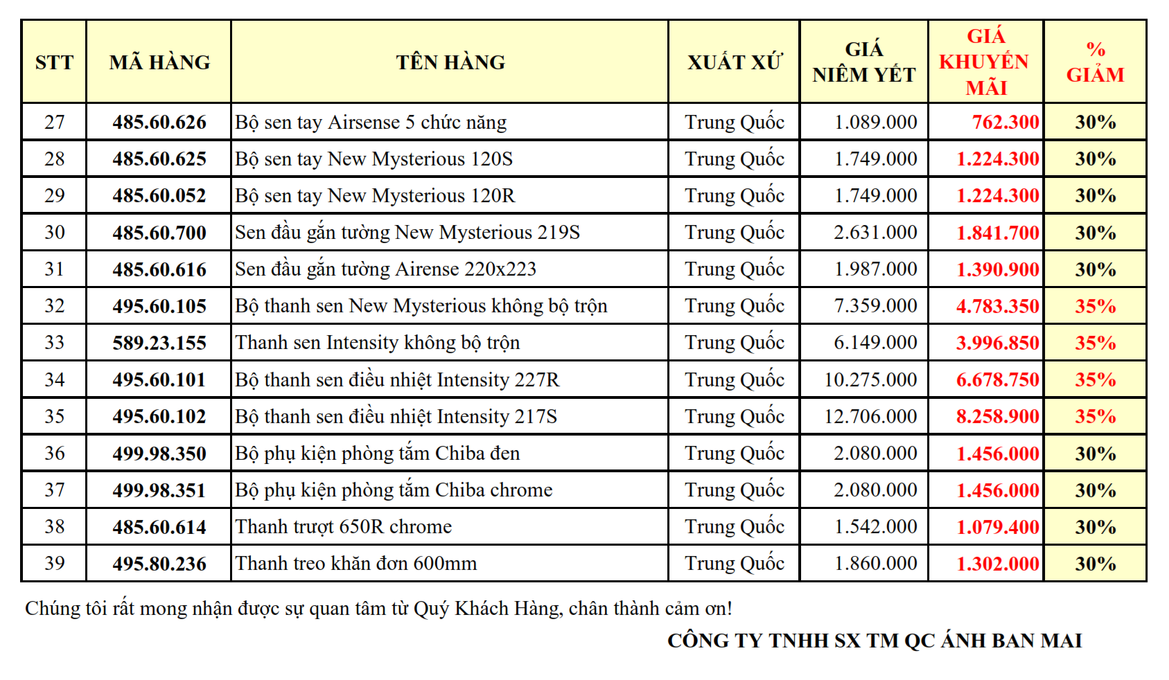 3. THIẾT BỊ VỆ SINH GIẢM TỪ 30 - 35%: