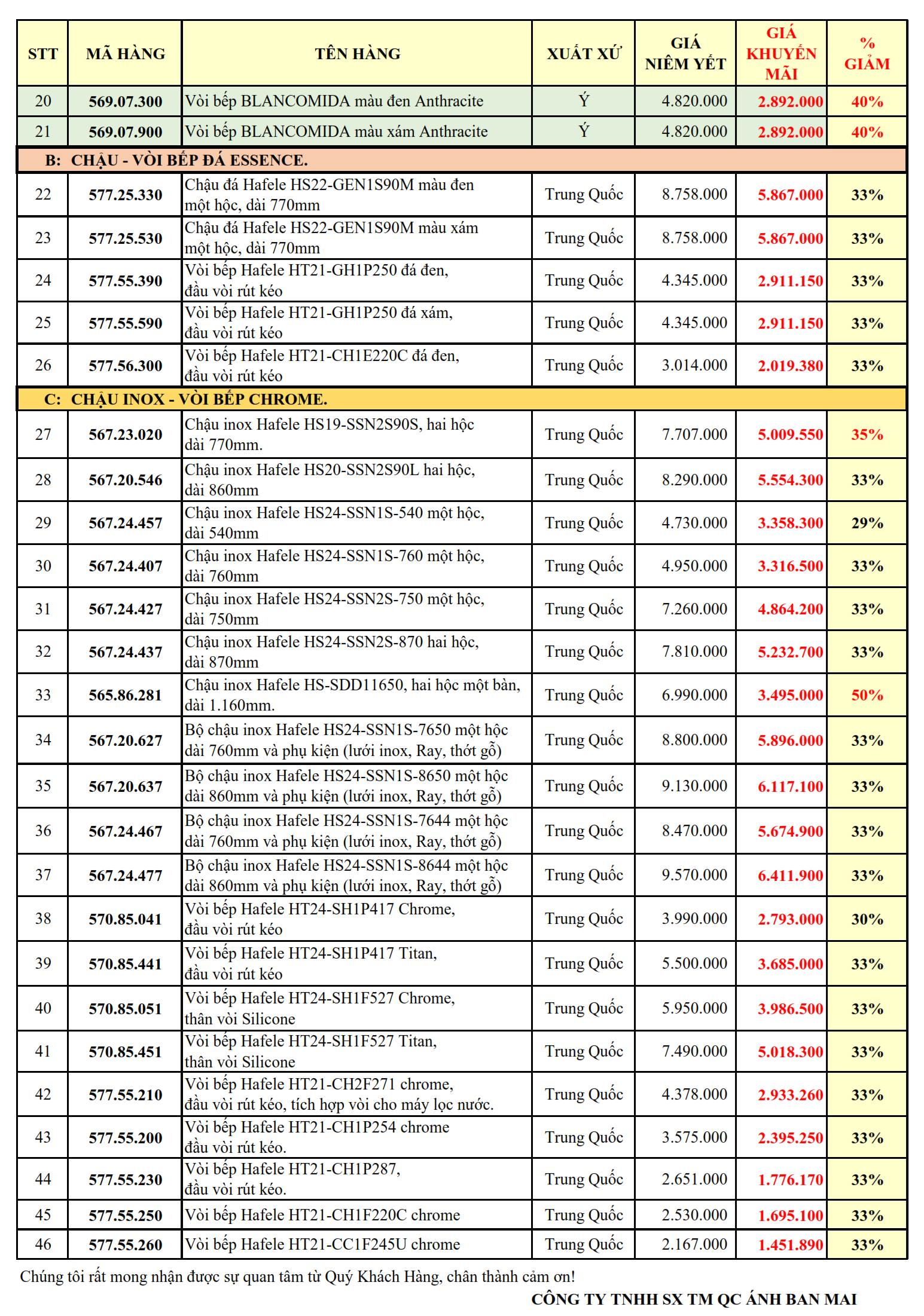 2. CHẬU VÒI BẾP GIẢM TỪ 29 - 50%: